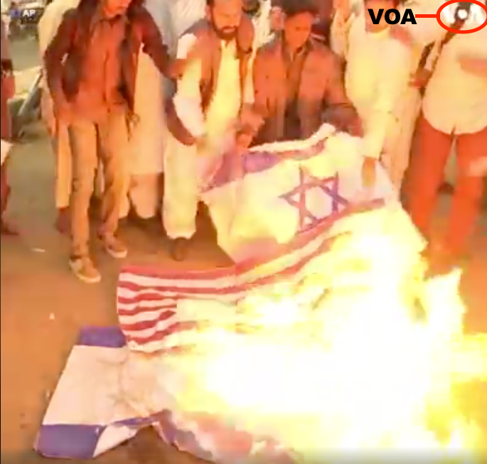 VOA produced and aired long videos showing burnings of American and Israeli flags without attaching any balancing content.